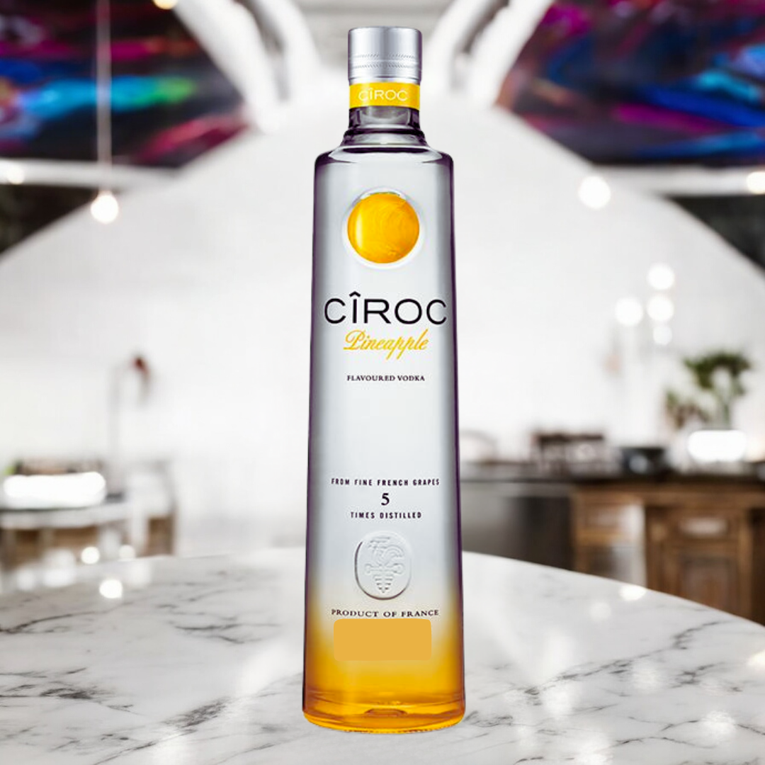 Cîroc Pineapple 100 cl – Vodka française distillée 5 fois. Élégante et fruitée, aux arômes d’ananas exotique. Idéale sur glace ou en cocktail.