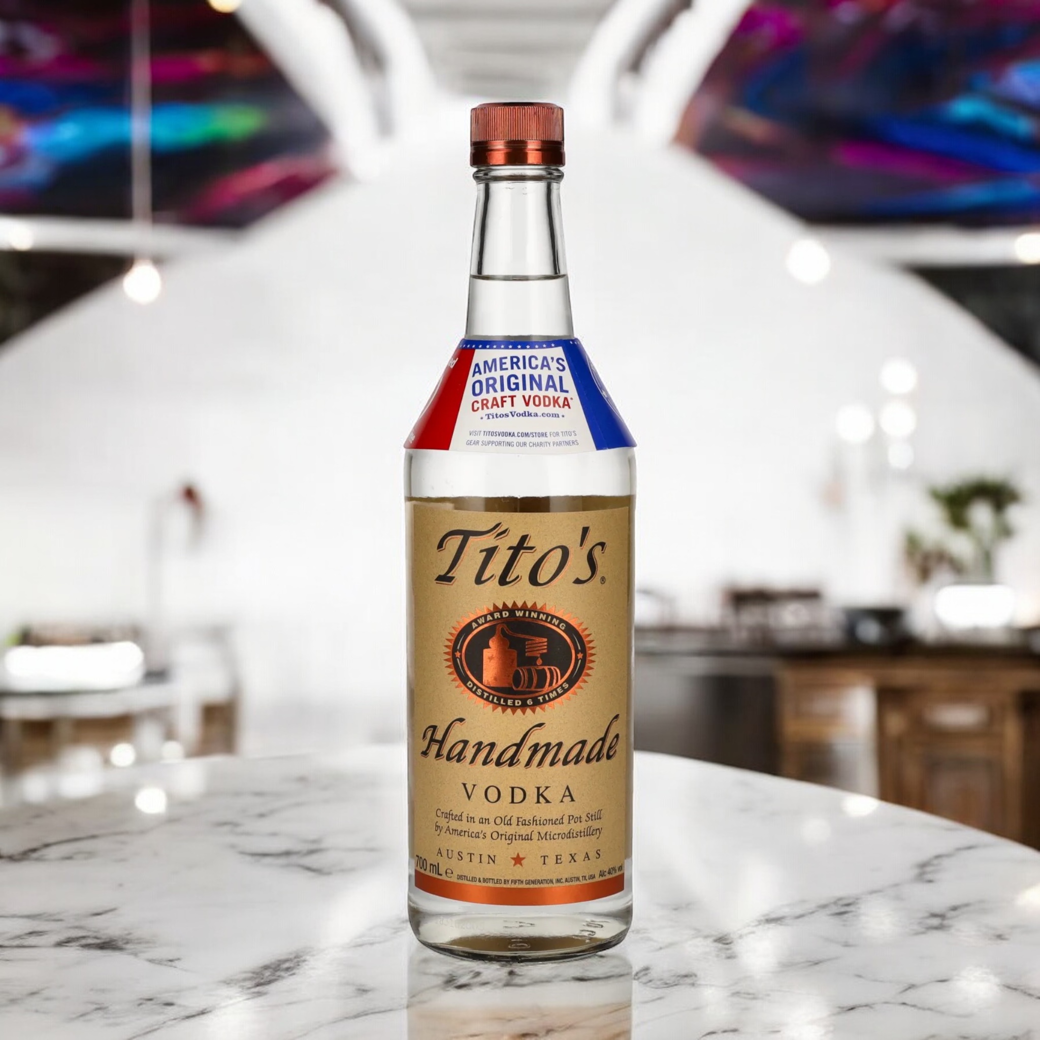 Tito’s Handmade Vodka est distillée à partir de maïs, ce qui la rend naturellement sans gluten. Fabriquée à Austin, Texas, cette vodka est le fruit d’un processus artisanal qui garantit une saveur douce et équilibrée.
